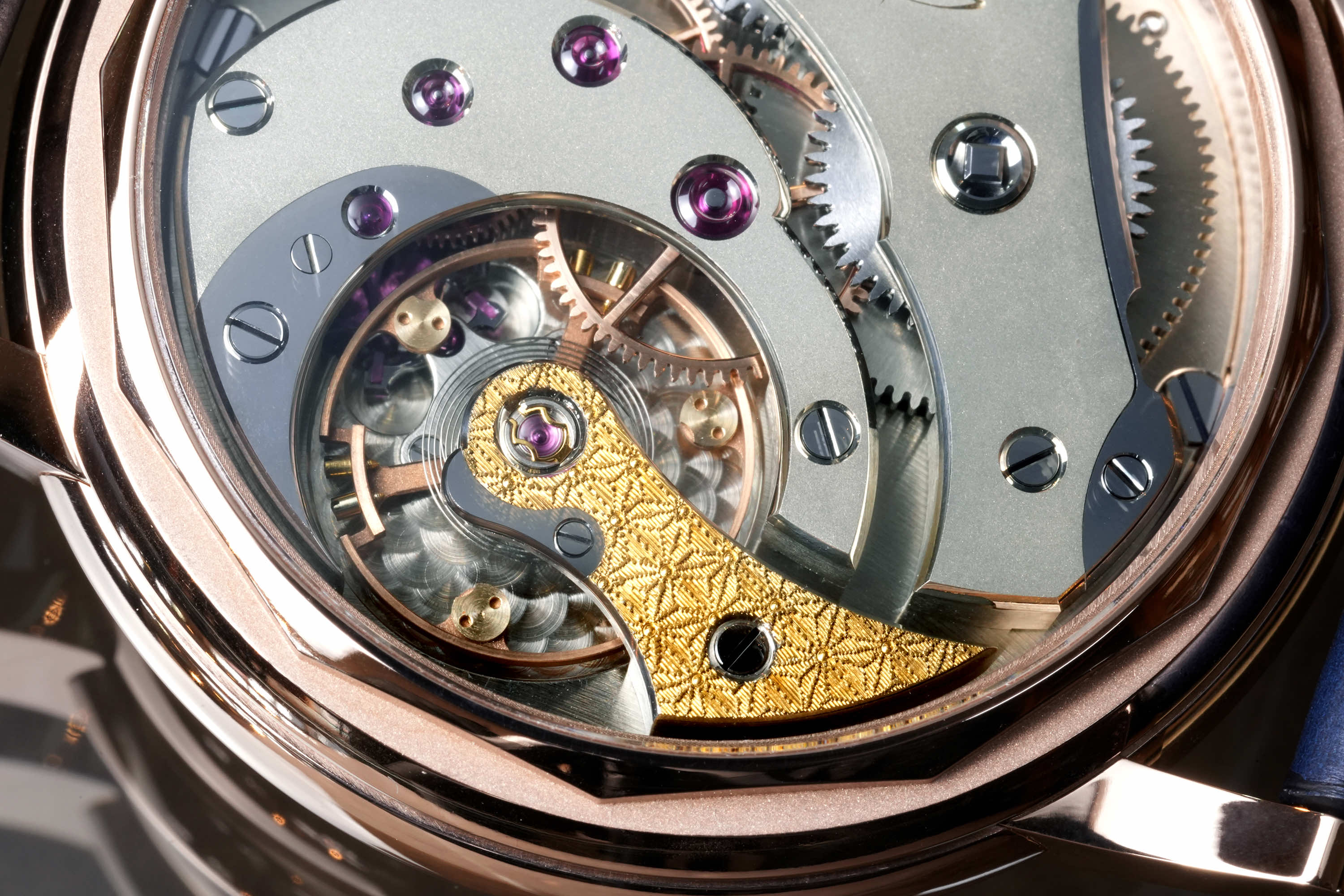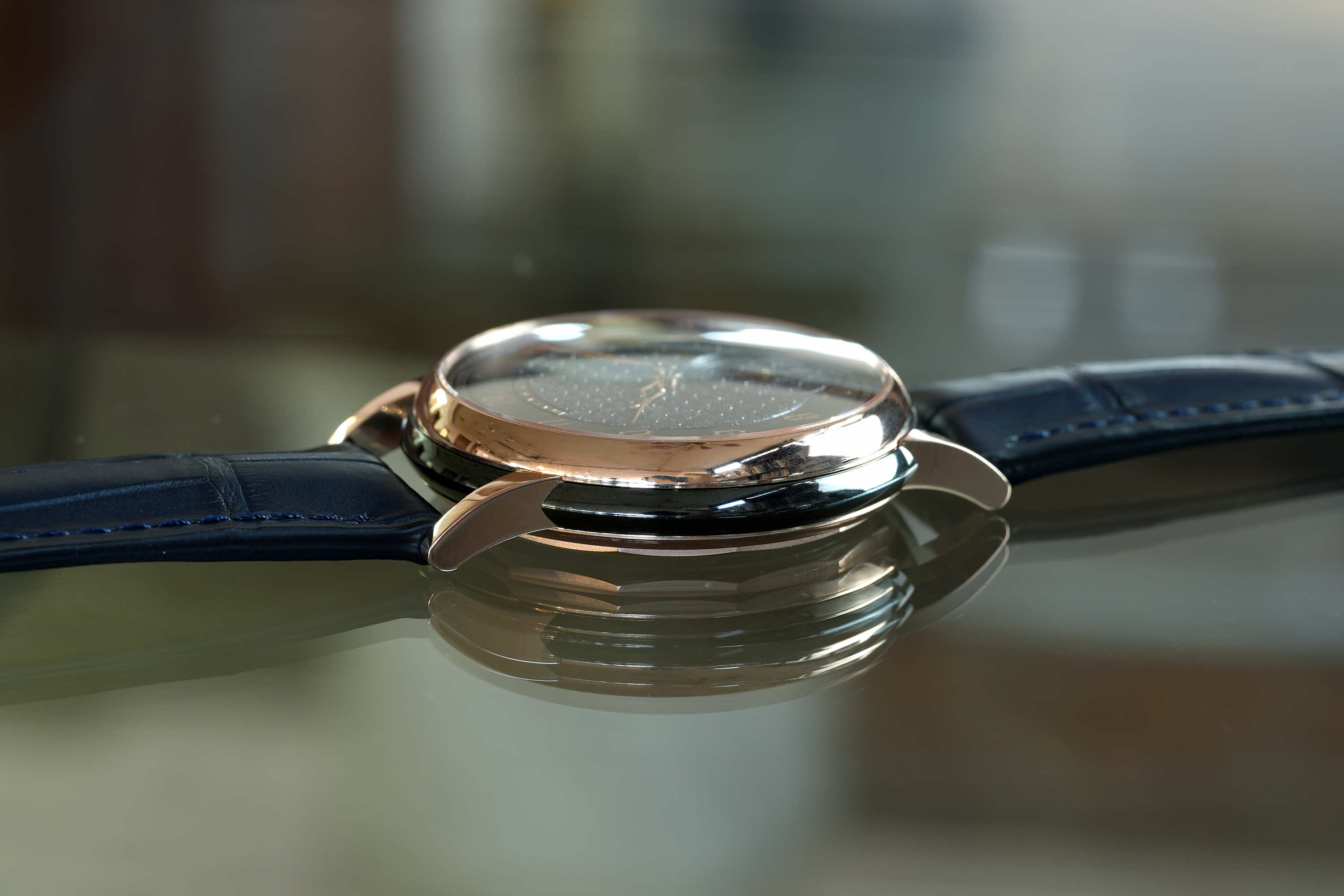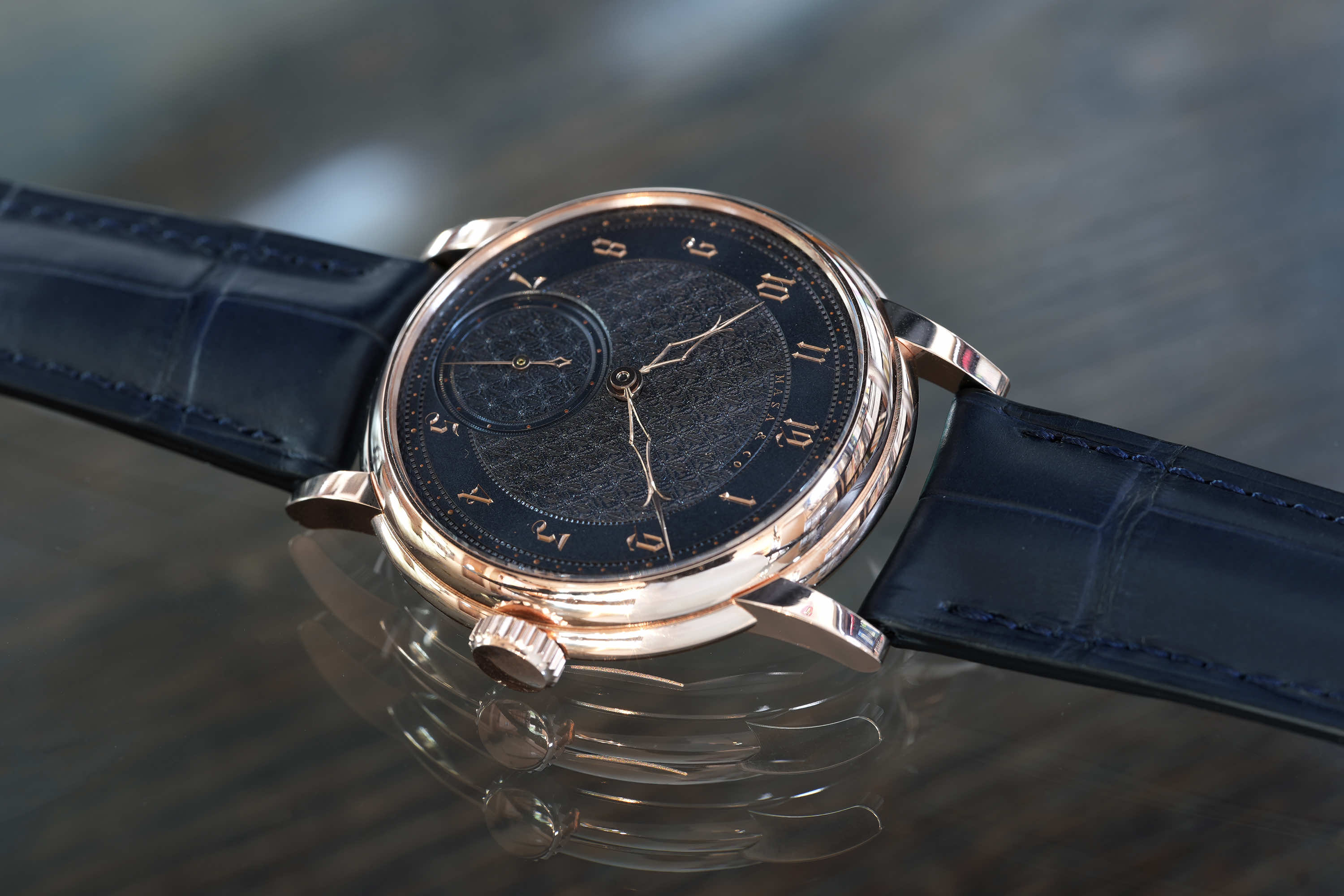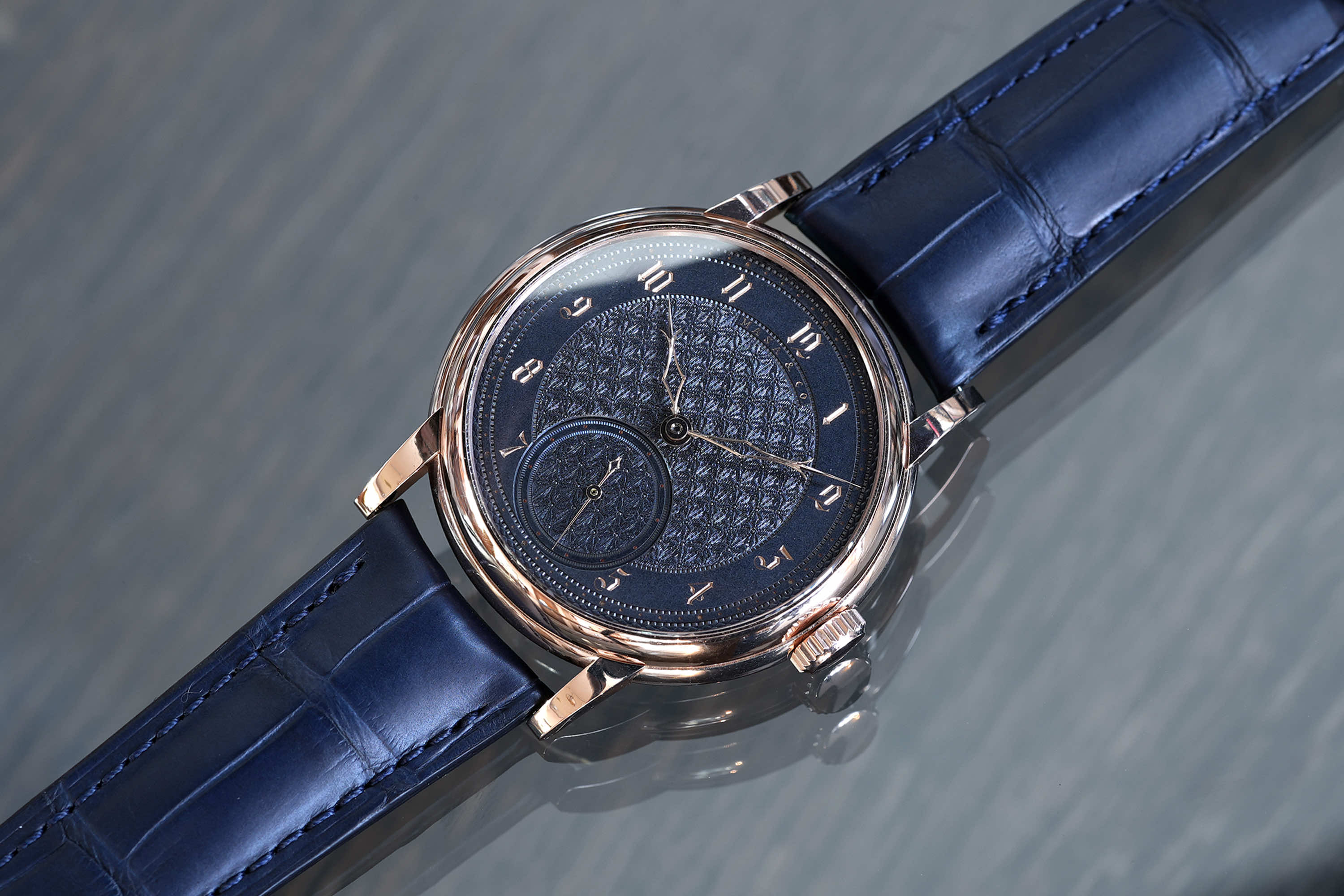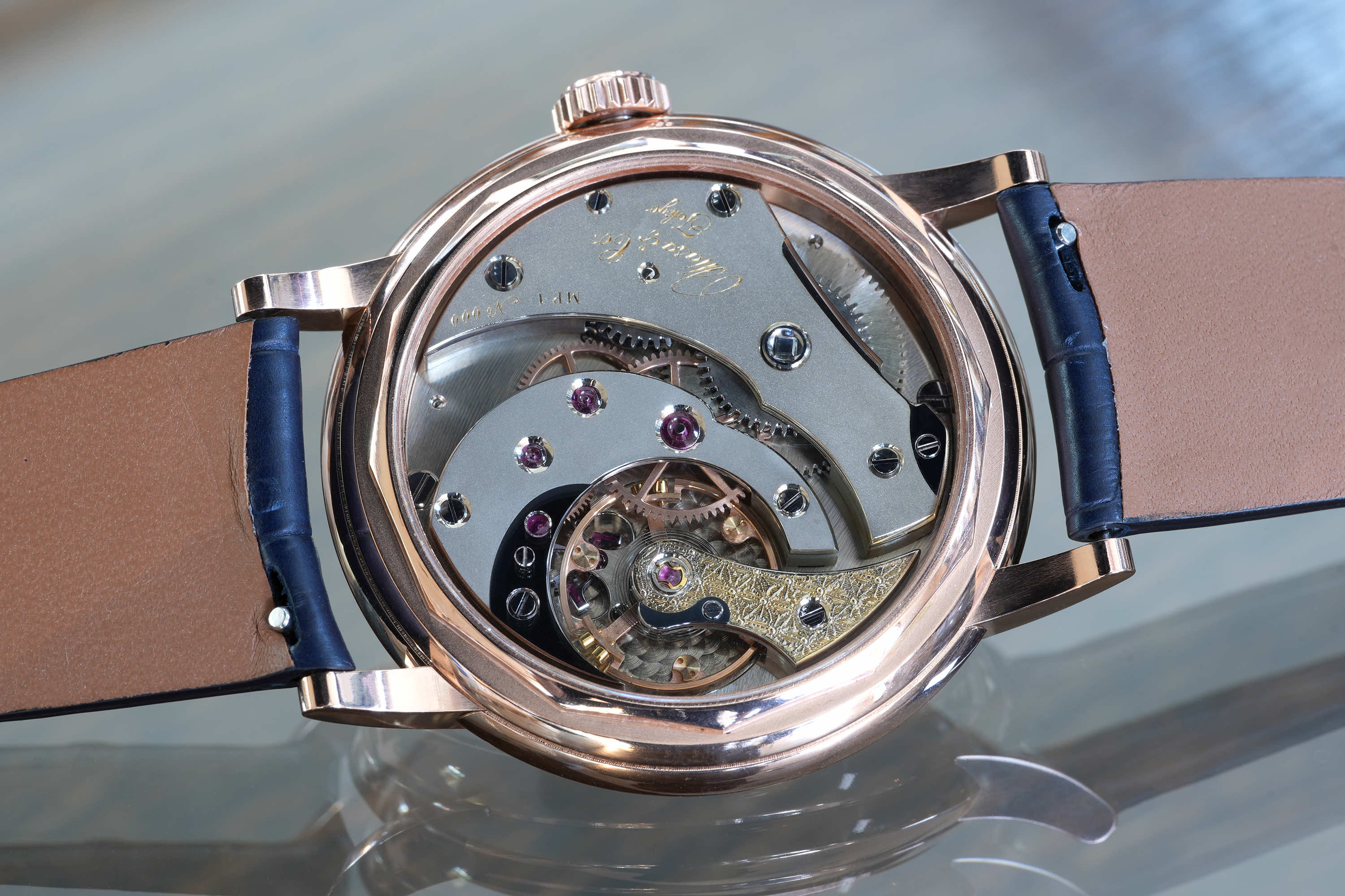 独自に仕上げられた自社製キャリバーMP1、専用設計のケースとの組み合わせにより「蒼黒」が完成した。